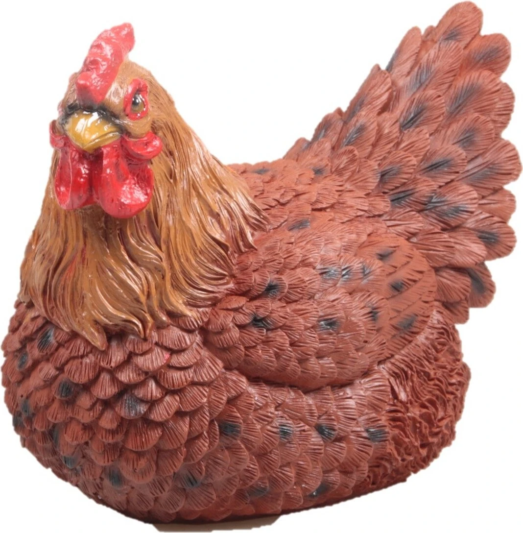 Heb je nog een lege hoek in je tuin of woonkamer die je wilt opfleuren? Dan is dit beeld van Farmwood animals wellicht iets voor jou! Dit exemplaar heeft de vorm van een kip die aan het broeden is. Het beeld is met oog voor detail gemaakt van polyresin. Zet het mooie beeld in het midden van het gras, bij een waterschaal of half verstopt onder een struik. Of zet het beeld binnen op de vensterbank of op een kast. Genoeg plekken waar deze kip mooi zal staan. De afmetingen zijn 8 x 7 x 7,5 cm.