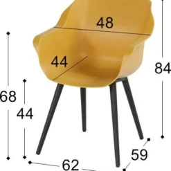 Standenstoel Sitges heeft de afmetingen 68 x 64,5 x 113 cm en heeft een zithoogte van 43 cm, 2 jaar garantie.