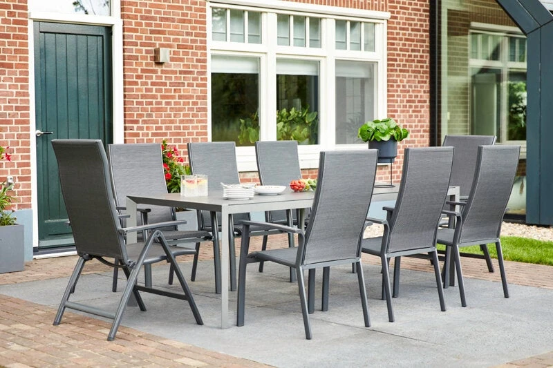De Sitges standenstoel van Hartman is een tijdloze aanwinst door het strakke en stijlvolle design. De Sitges recliner onderscheidt zich van de andere recliners door het dubbele textileen. Dit geeft de recliner een extra luxueuze uitstraling. Tuinstoel Sitges heeft een sterk aluminium frame wat de stoel lekker licht van gewicht maakt. De comfortabele textileen zitting is uitgevoerd in de kleur antraciet en is aan de hand van de leuning gemakkelijk te verstellen naar de gewenste stand. Dit zorgt voor een optimaal zitcomfort en maakt deze tuinstoel ideaal om ontspannen te kunnen tafelen. Als je bent uitgegeten zet je gewoon de rugleuning naar achteren en uitbuiken maar!