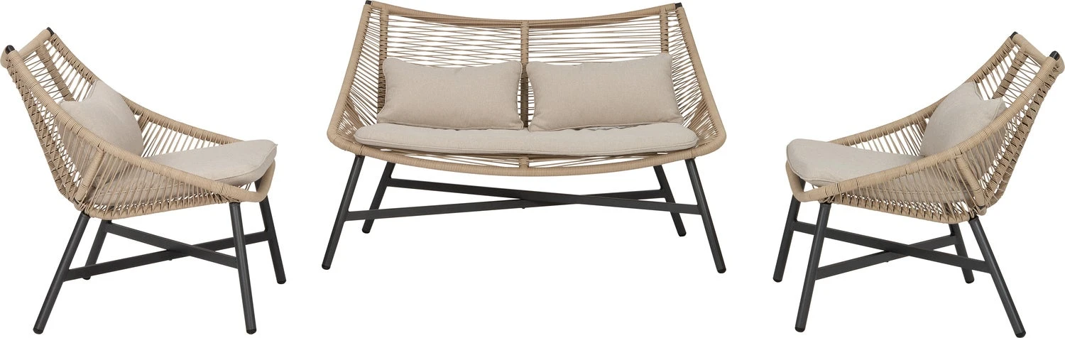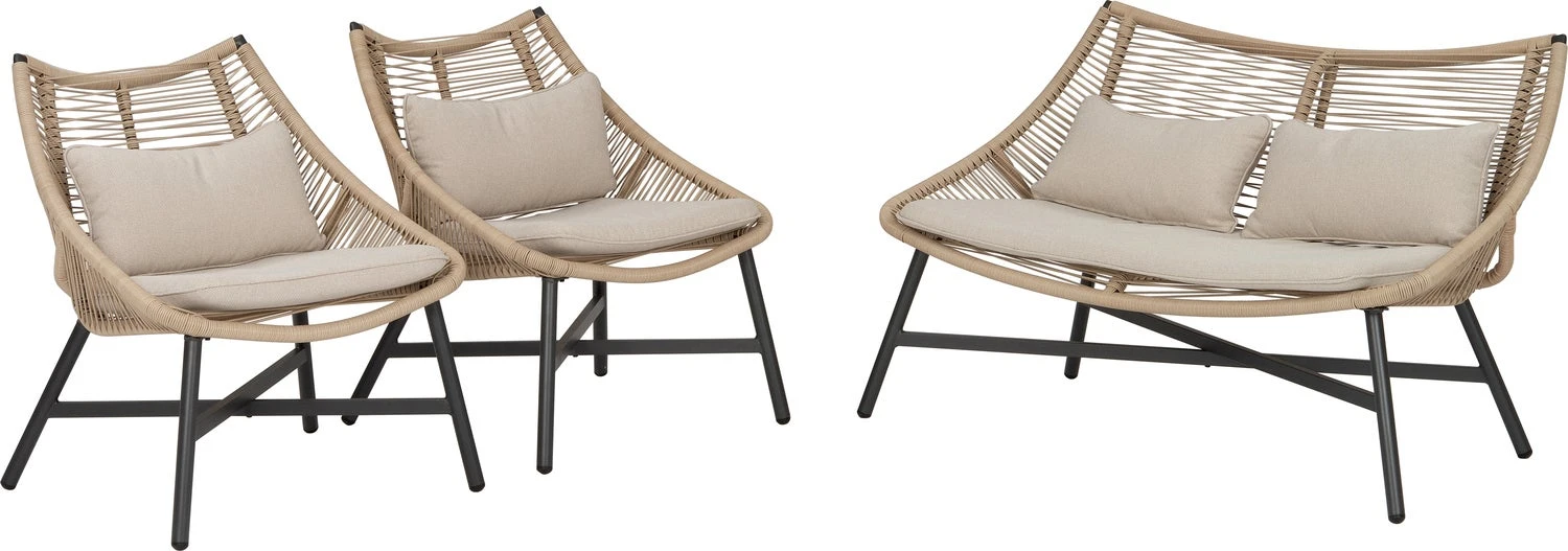 Loungeset Saar is 3-delig en bestaat uit een 2-zits loungebank, afmetingen 138 x 78 x 87 cm, twee loungestoelen, afmetingen 73 x 80 x 87 cm. Zithoogte 46 cm, 2 jaar garantie. Deze Saar loungeset is inclusief 7 comfortabele kussens in de kleur beige. De tuinset wordt niet gemonteerd geleverd en is eenvoudig zelf in elkaar te zetten aan de hand van de meegeleverde instructie.
