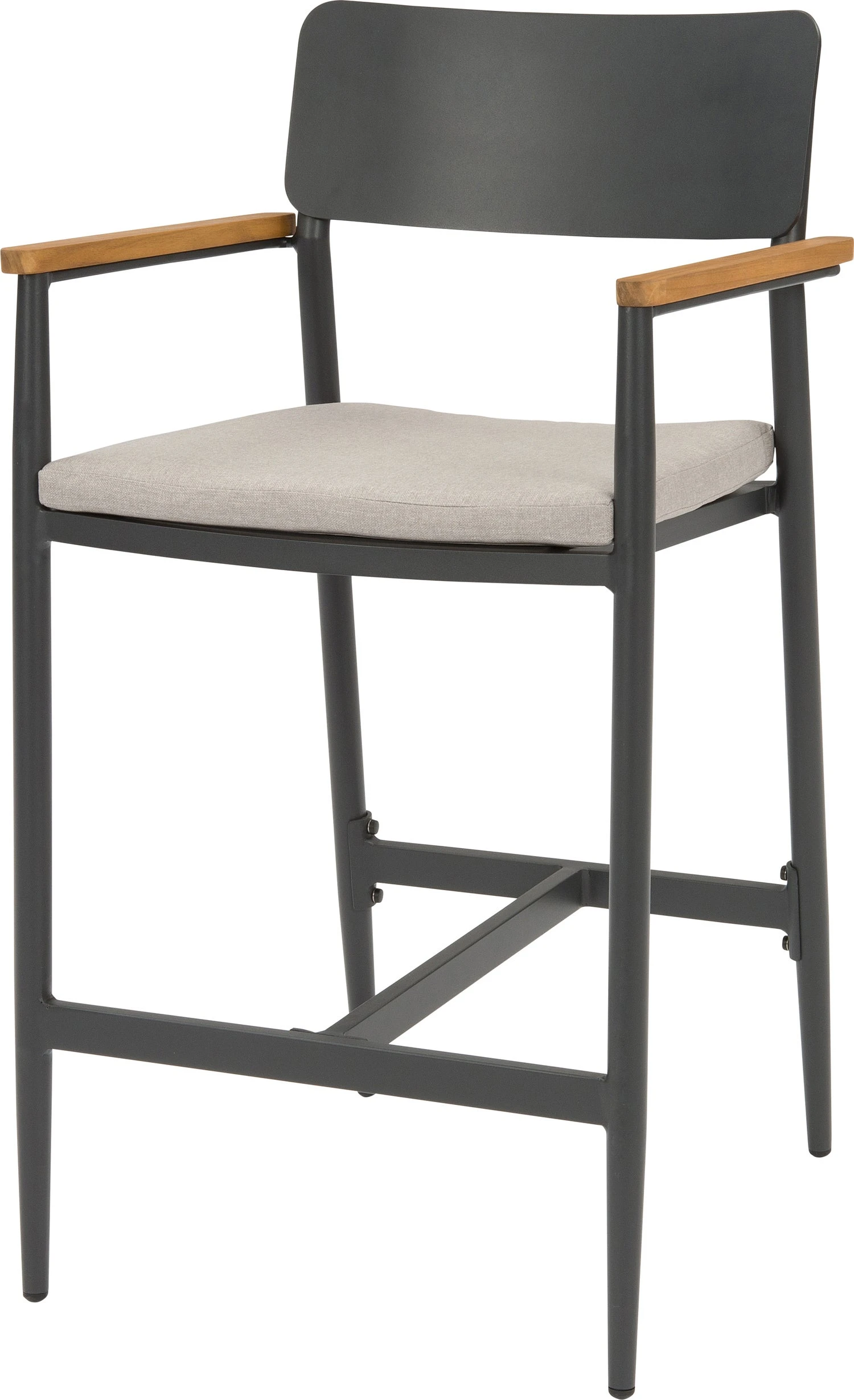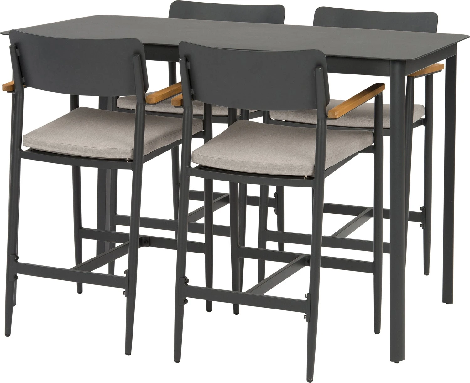 Wil jij ook genieten op grote hoogte? Met de Suze barstoel van Intratuin zit je lekker hoog en kan je alles dus goed overzien. Barkruk Suze is een hoge tuinstoel gemaakt van aluminium in de kleur antraciet die je net zo lief binnen neerzet. Het eenvoudige design en de strakke belijning geven deze barstoel een rustige en moderne uitstraling. De armleuningen zijn gemaakt van hoogwaardig acaciahout en de barstoel heeft een fijne rugleuning, waardoor je heerlijk kunt nagenieten van de borrel.