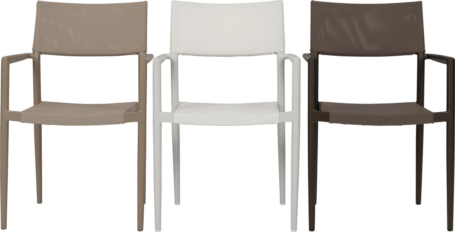 Sling is een stof die vaak wordt gebruikt voor buitenstoelen. Deze stof is waterbestendig, gemakkelijk te onderhouden en scheurt of barst niet snel. Eettafelstoel Cas is verkrijgbaar in verschillende kleuren. Ook beschikbaar in de serie Cas is de eettafel. Laat je inspireren door de mogelijkheden!