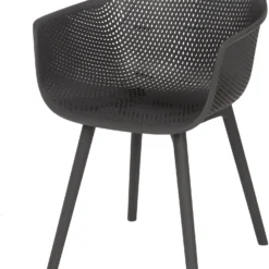 Met deze moderne kuipstoel van Intratuin uit de serie Dex in de kleur antraciet je zeker de show. Eettafelstoel Dex heeft een eenvoudig design met een tijdloze uitstraling en een comfortabele zit door de fijne kuipzitting. Eettafelstoel Dex is onderhoudsvriendelijk en kan wel tegen een stootje door het gebruik van hoogwaardig polypropeen. Dit maakt de tuinstoel niet alleen een fijne aanwinst voor tuin en terras, door zijn fraaie uiterlijk zet je de kuipstoel net zo lief binnen neer. Een schapenvachtje of een paar lekkere kussens er in en het lange tafelen kan beginnen. Aan tafel!