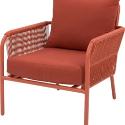 Loungestoel Siri heeft de afmetingen 79 x 68 x 80 cm en wordt geleverd inclusief 2 stevige kussens in de kleur terracotta voor nog meer loungeplezier. Zithoogte 30 cm, 2 jaar garantie.