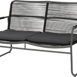 De 2-persoons loungebank heeft een antraciet stalen frame dat is afgewerkt met een beschermende poedercoating. De zitting en leuning zijn gemaakt van stevig geweven polyester touw dat is uitgevoerd in de kleur zwart. Dit polyester touw geeft niet alleen een ruimtelijk effect op balkon of terras, het materiaal is ook nog eens oersterk en heeft een grote draag- en trekkracht die je door het decoratieve karakter steeds vaker terug ziet komen in de tuin. Je hoeft dus niet bang te zijn dat het touw op den duur zijn stevigheid verliest. Bovendien is tuinbank Box ook nog eens lekker licht in gewicht zodat je ‘m met de seizoenen gemakkelijk kunt verplaatsen. Easy does it!